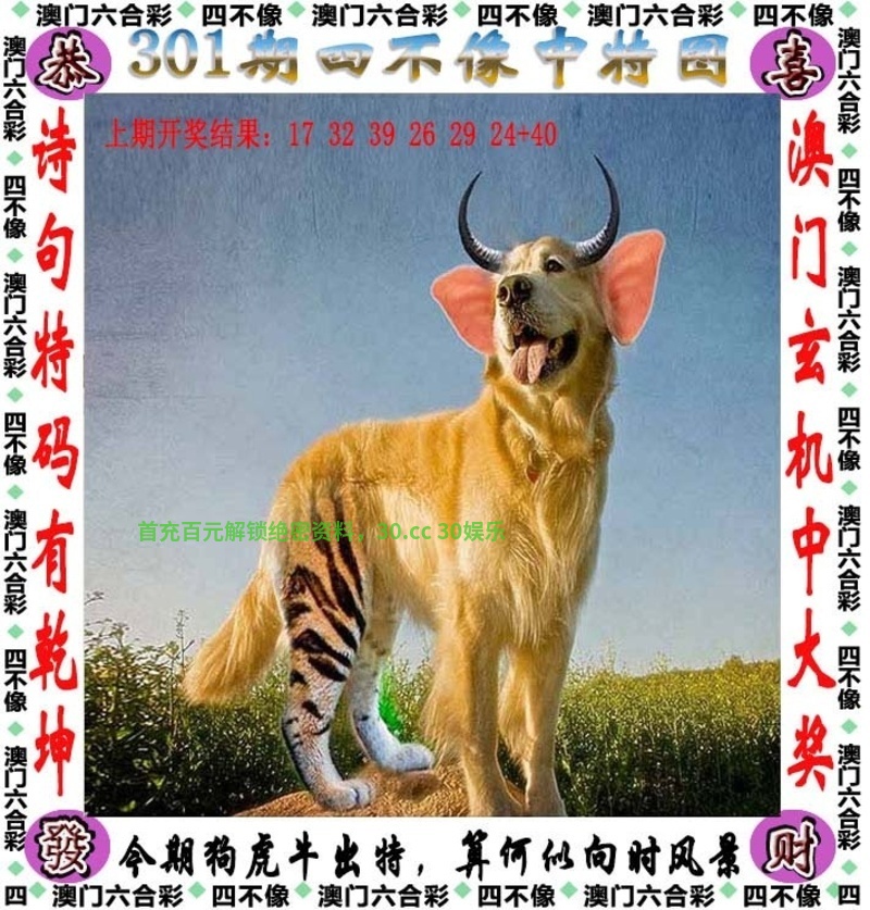 | 301期:☕绝杀两肖【虎狗】开:牛05中 |