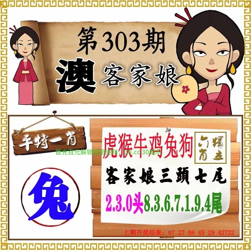 | 303期:七肖 | 兔马鼠鸡虎羊猴 | 开:兔15 |